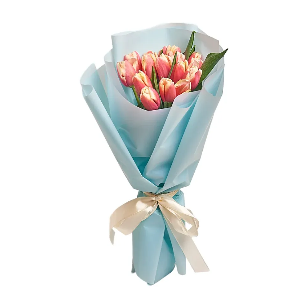 Тюльпан розово-белый, дизайнерская упаковка.