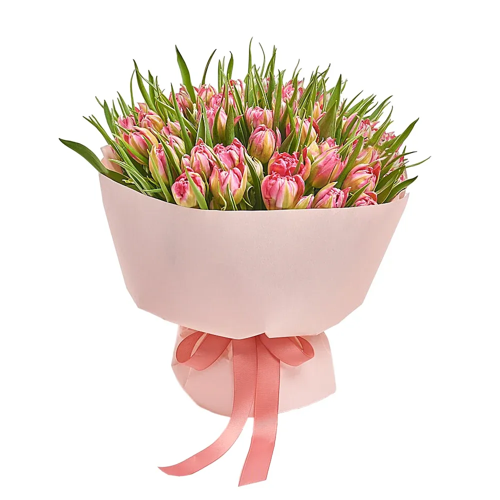 Пионовидный розовый тюльпан, дизайнерская упаковка.