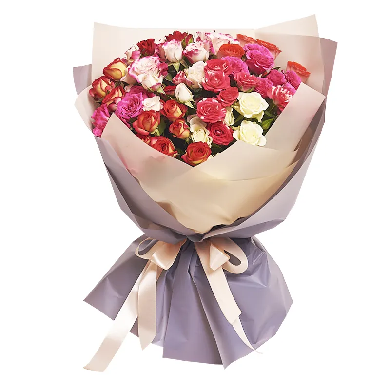 Кустовая роза микс, дизайнерская упаковка.