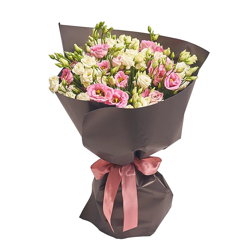 Эустома белая, розовая, дизайнерская упаковка.