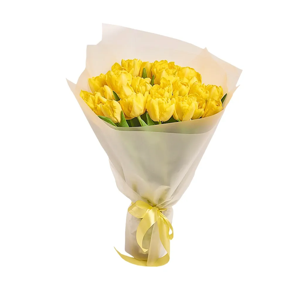 Желтый пионовидный тюльпан, дизайнерская упаковка.