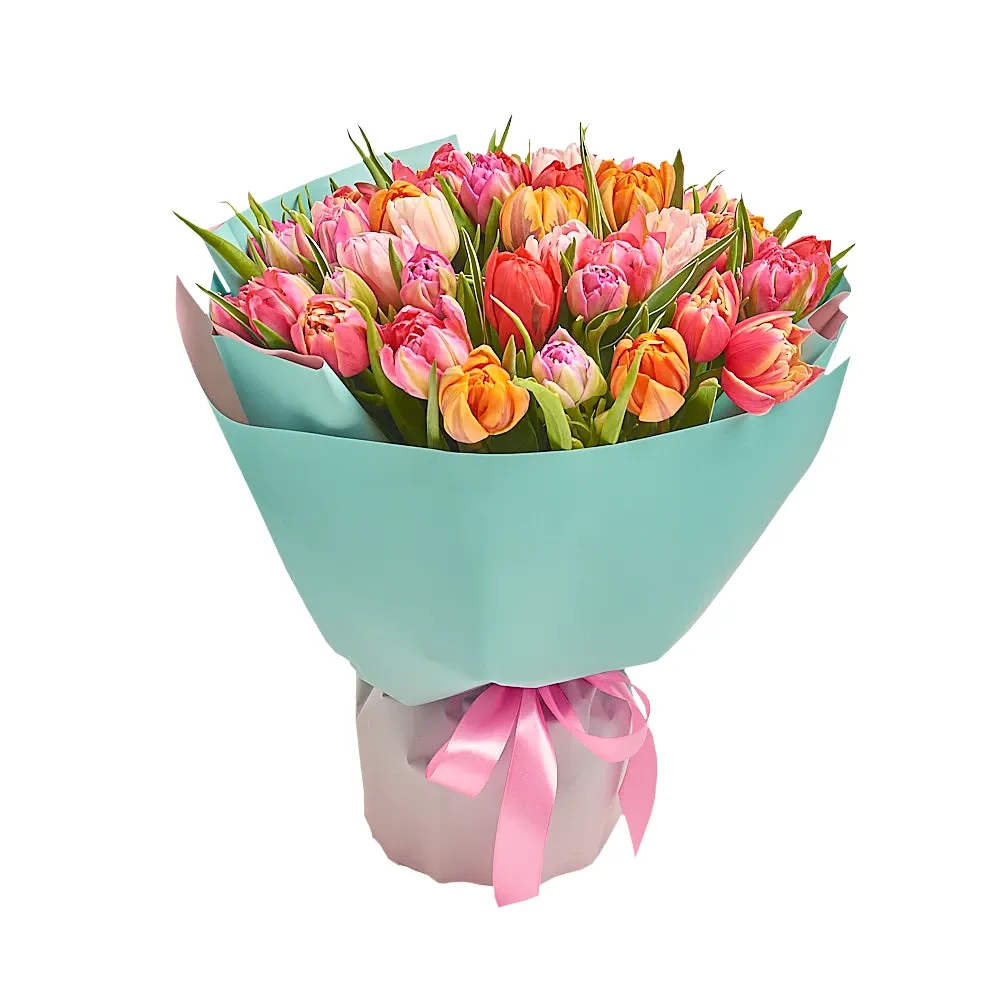 Разноцветные тюльпаны, дизайнерская упаковка.
