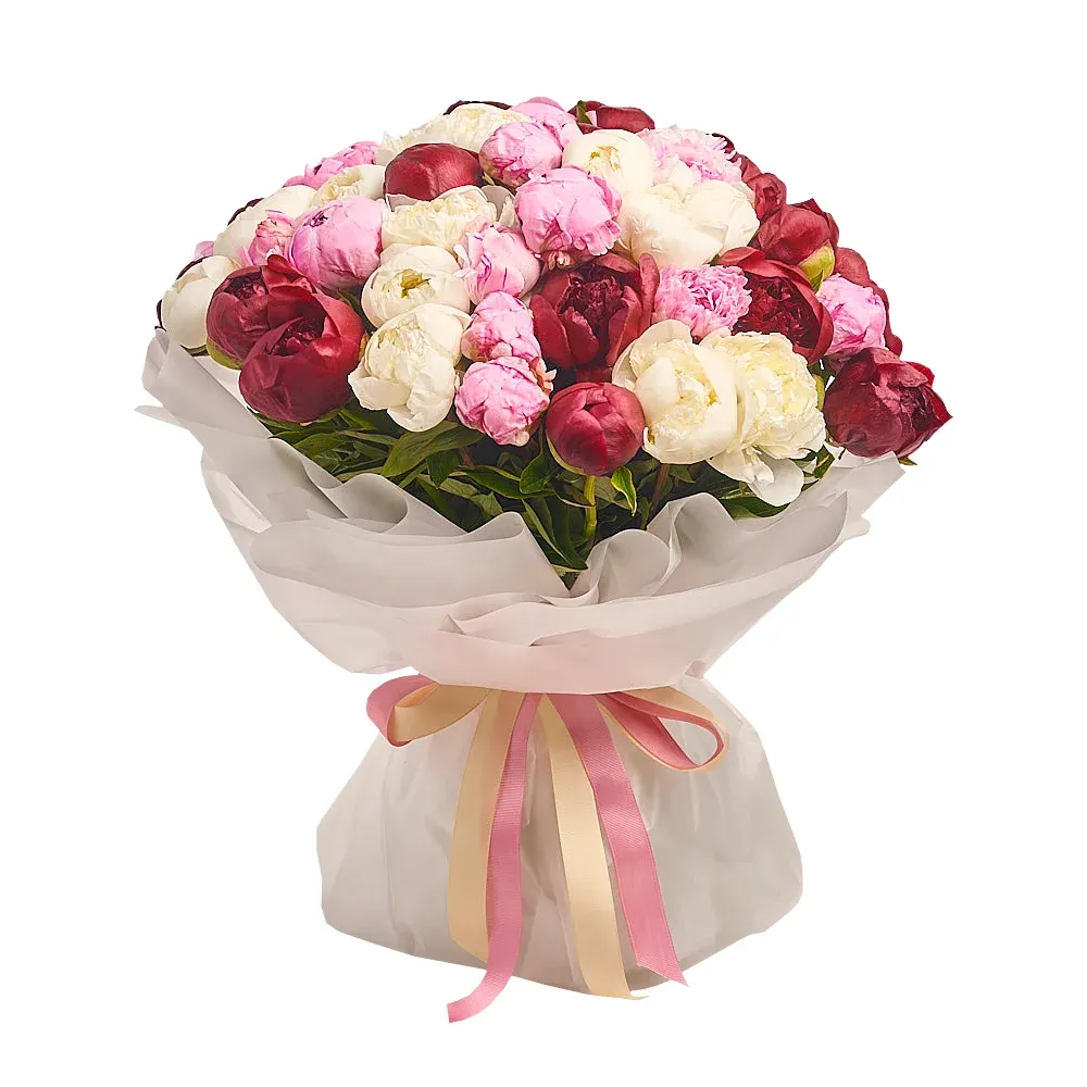 Пион белый, розовый, бордовый, дизайнерская упаковка.