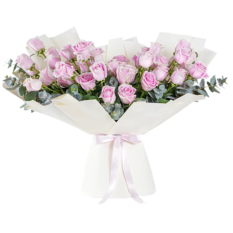 Роза нежно-розовая, эвкалипт, дизайнерская упаковка.