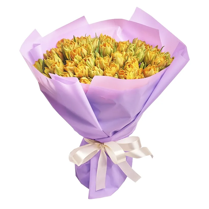 Тюльпан пионовидный желтый, дизайнерская упаковка.