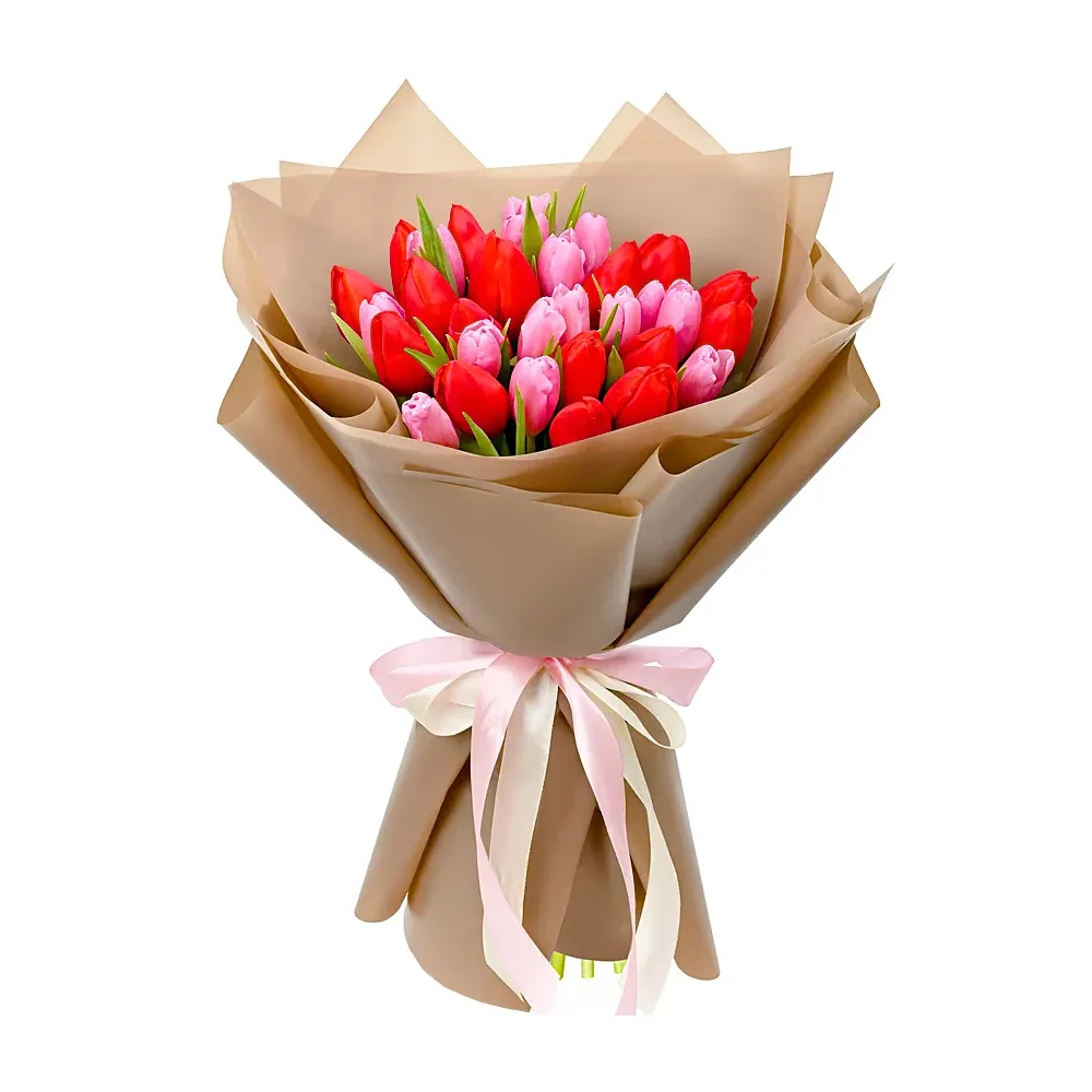 Красный тюльпан, розовый тюльпан, дизайнерская упаковка.