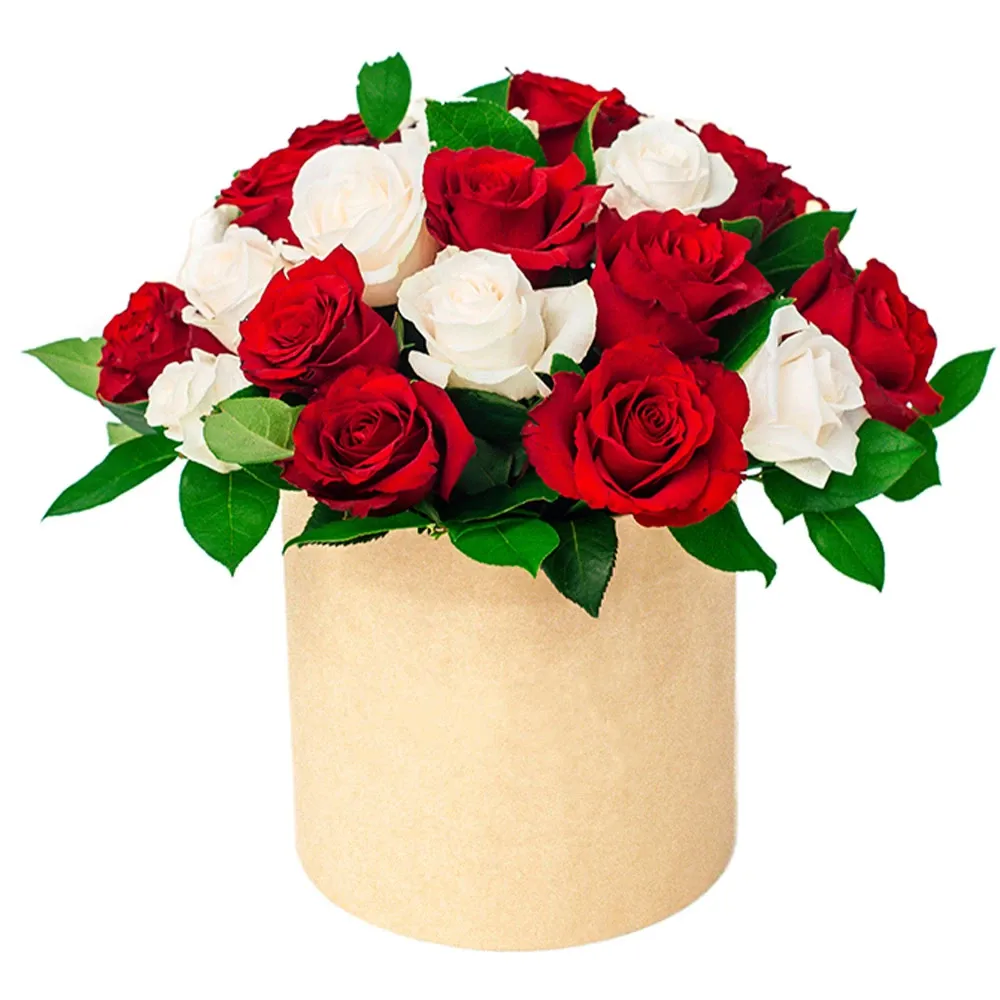 Роза одноголовая микс, оазис, шляпная коробка.