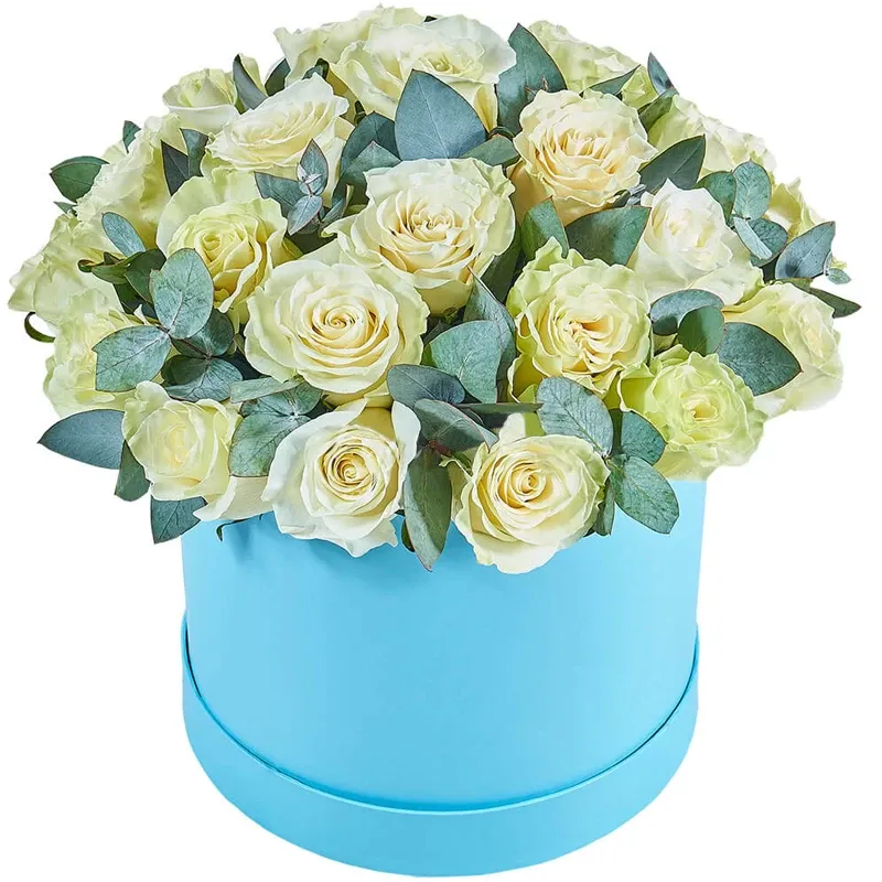 Роза одноголовая белая, оазис, шляпная коробка.