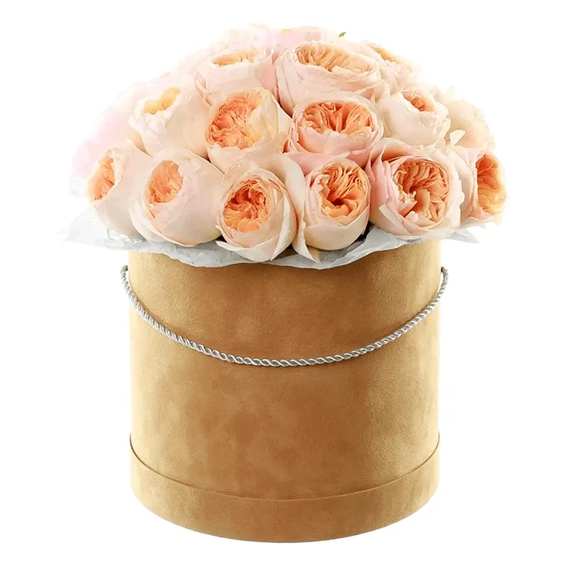 Роза пионовидная персиковая, оазис, квадратный бокс.