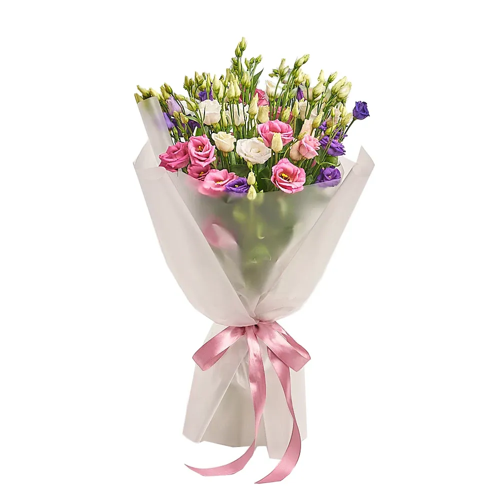 Лизиантус фиолетовый, розовый, белый, дизайнерская упаковка.