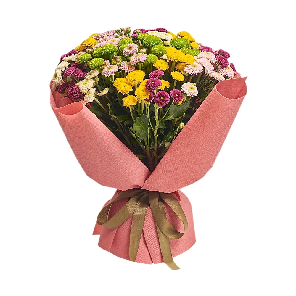 Разноцветная хризантема Сантини, дизайнерская упаковка.