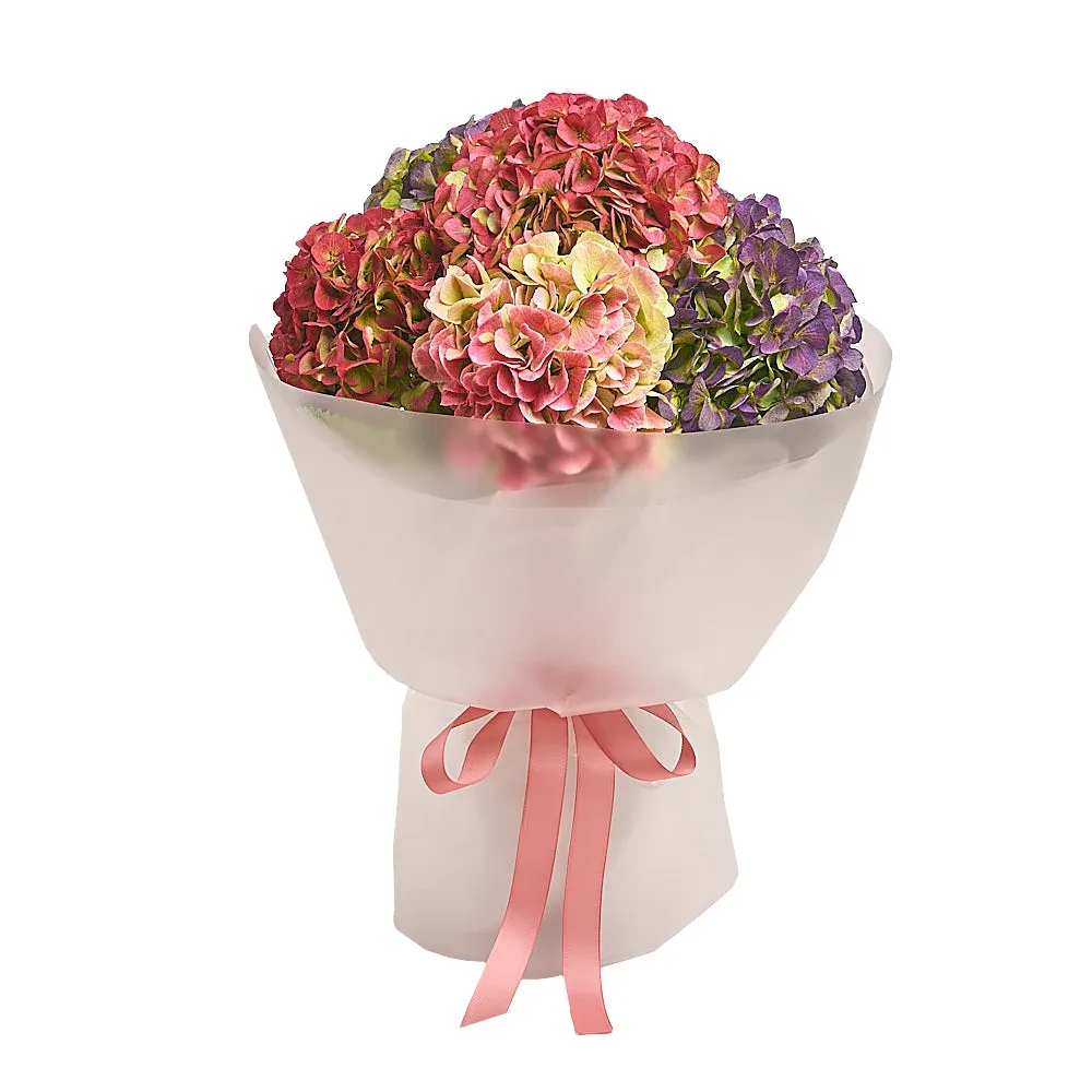 Гортензия малиновая, зелено-розовая, фиолетово-зеленая, дизайнерская упаковка.