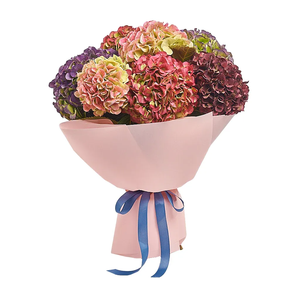 Гортензия зеленая, фиолетовая, розовая, кофейная, бордовая, дизайнерская упаковка.