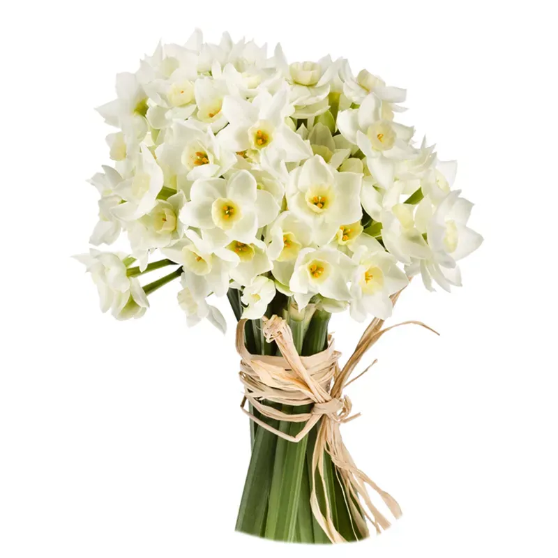 С их характерной трубчатой формой, нарциссы создают гармоничный и утончённый образ, который легко вписывается в любую цветочную композицию. Их сладковатый, слегка восточный аромат окутывает атмосферу, пробуждая ощущение весеннего обновления и бодрости. Нарциссы великолепно сочетаются с другими цветами, придавая букетам свежесть и яркость, но даже будучи представленными в простом букете, они способны стать истинным украшением любого интерьера.