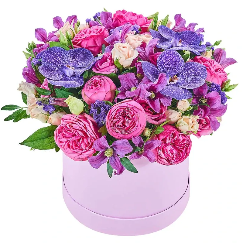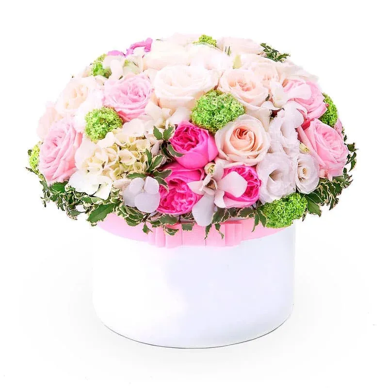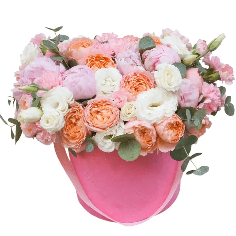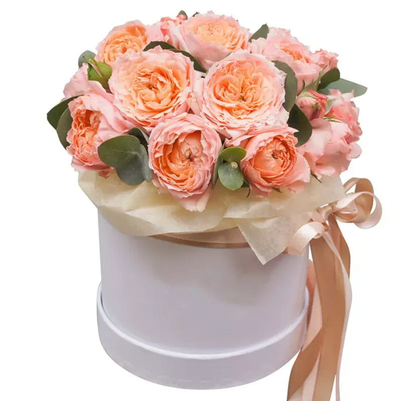 Купить Пионовидные розы в шляпной коробке в Анапе